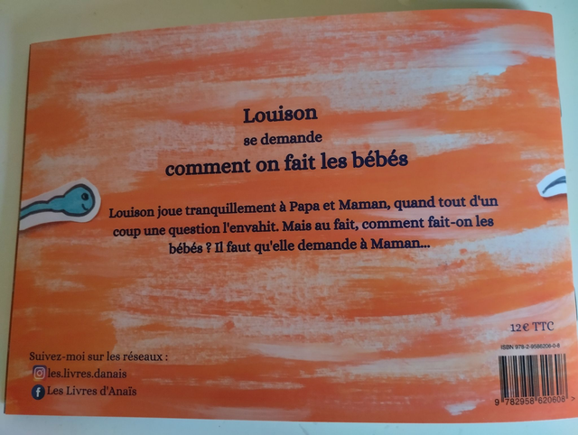 Louison joue tranquillement à Papa et Maman, quand tout d'un coup une question l'envahit. Mais au fait, comment fait-on les bébés ? Il faut qu'elle demande à Maman... Un livre auto-édité qui s'adresse aux plus jeunes et qui aidera à poser des mots justes dans une histoire toute douce.